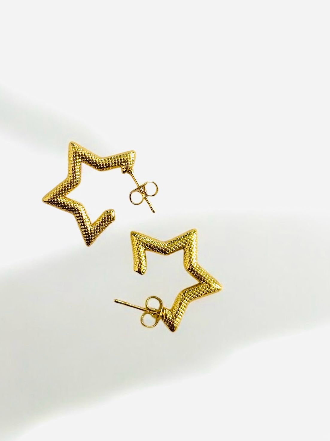 Shine bright with our ... d="156">Star Light Earrings, designed for the dreamers and the bold. Crafted with precision and elegance, these earrings feature a unique, textured star silhouette that captures light beautifully from every angle.